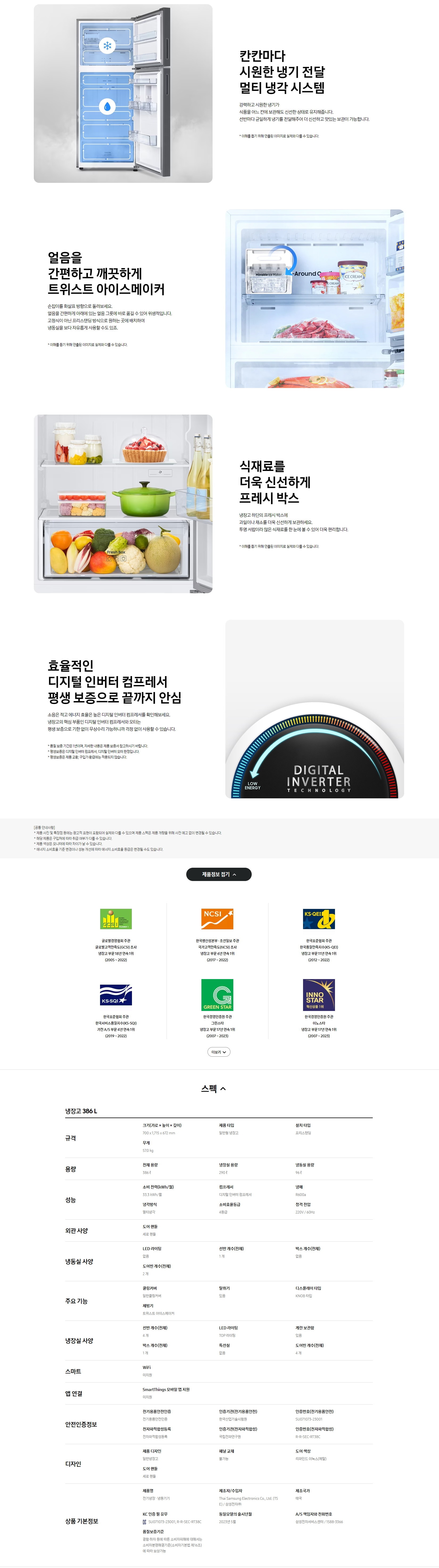 삼성전자 삼성 2도어 386L 메탈 리파인드 이녹스 (RT38CG6024S9)