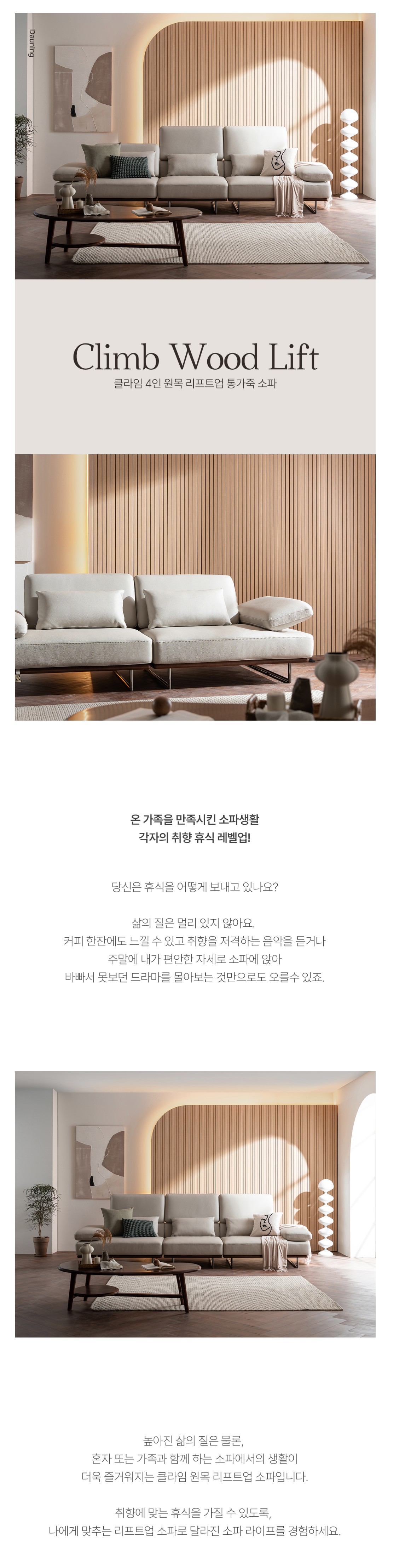 다우닝 클라임 원목 4인 리프트업 전체 통가죽 소파