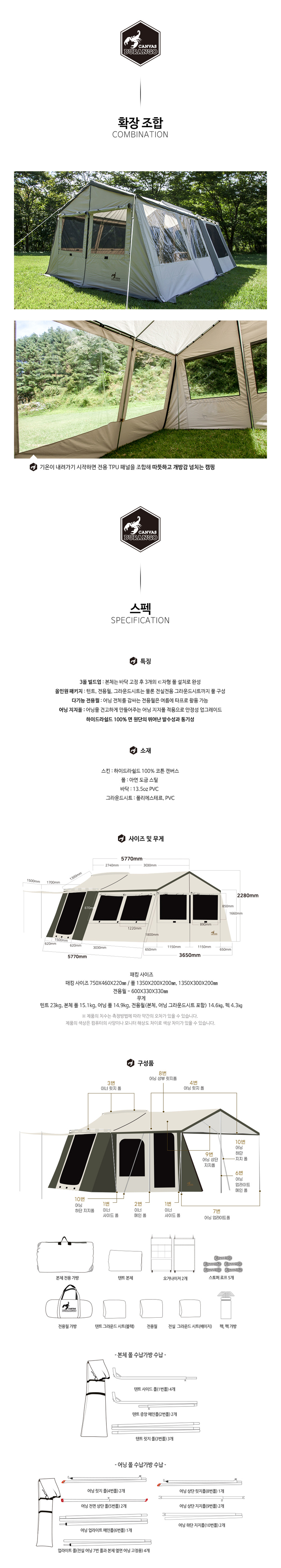 듀랑고 캐빈와이드 라지 L 캐빈형 면텐트 거실형텐트