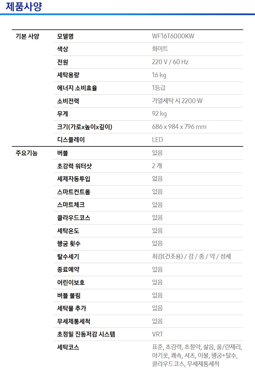 삼성전자 삼성 WF16T6000KW + DV90TA040AE