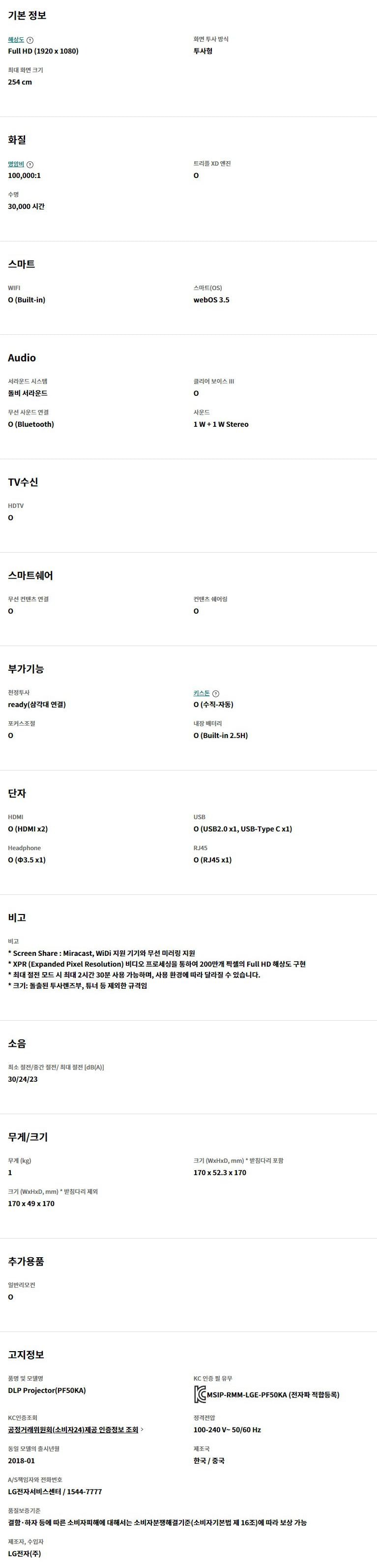 LG전자 시네빔 PF50KA