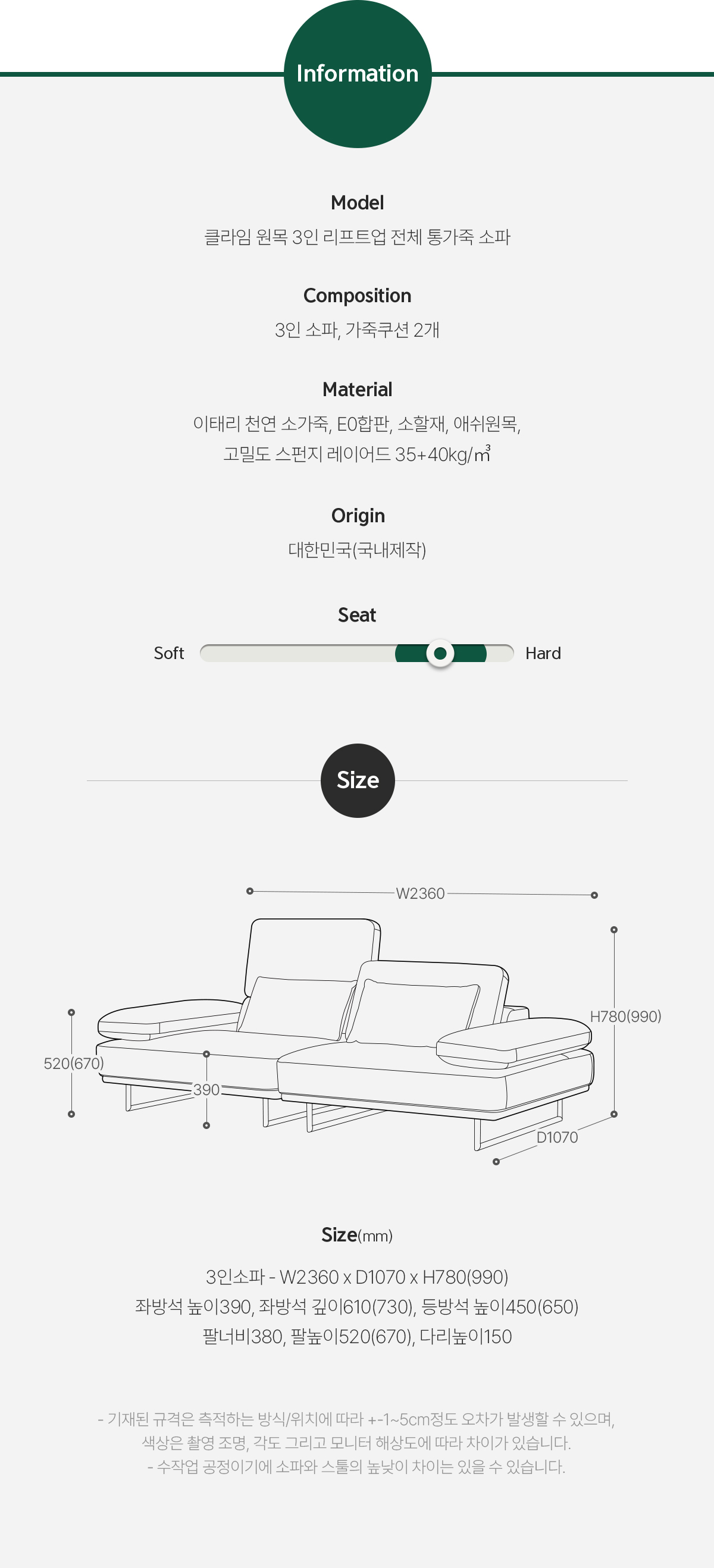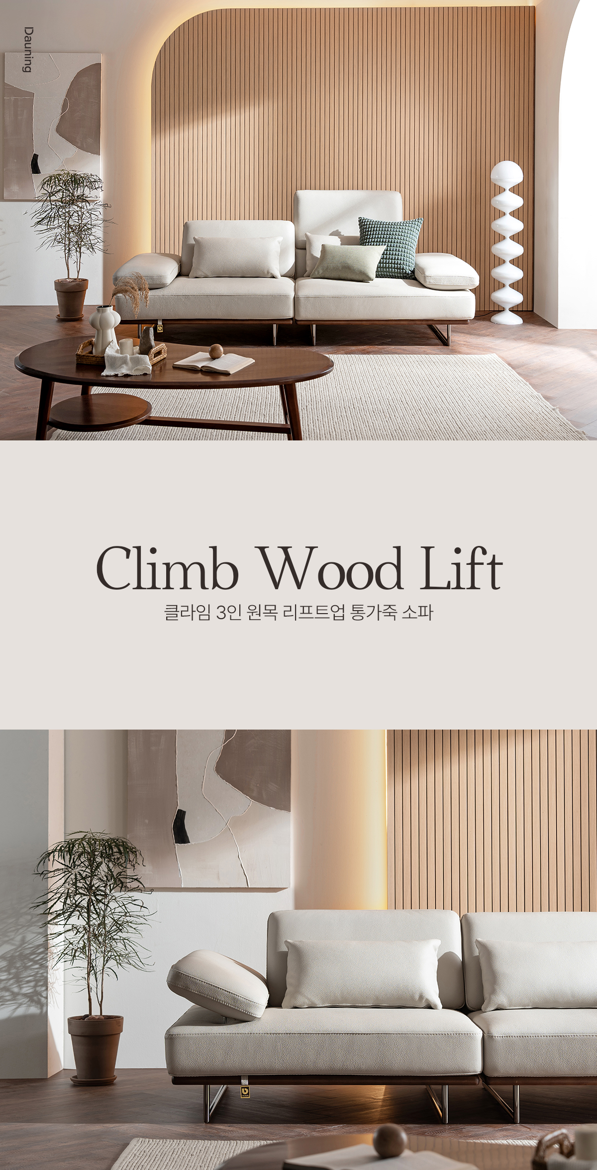 다우닝 클라임 원목 3인 리프트업 전체 통가죽 소파