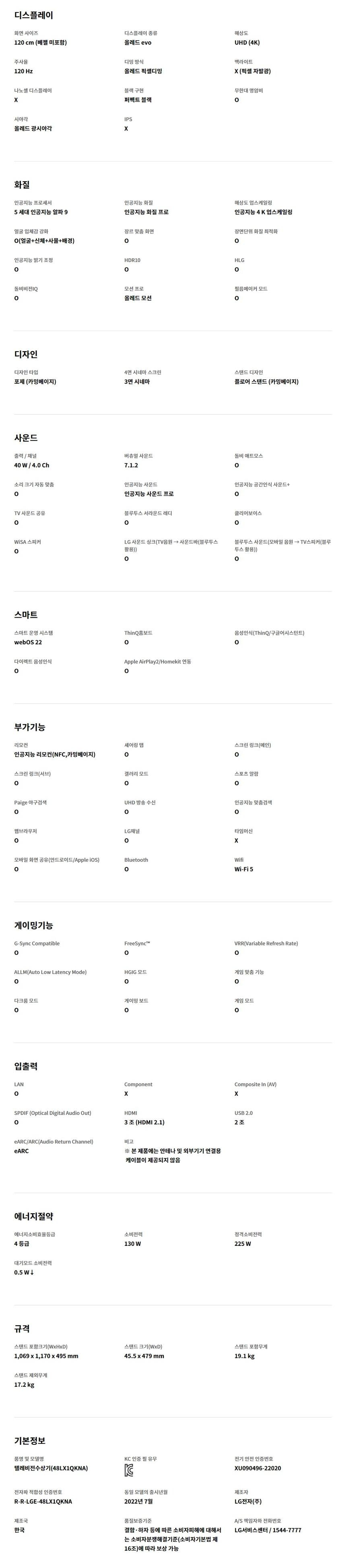 LG전자 2022 오브제 pose 4K 120cm (48LX1QKNA)