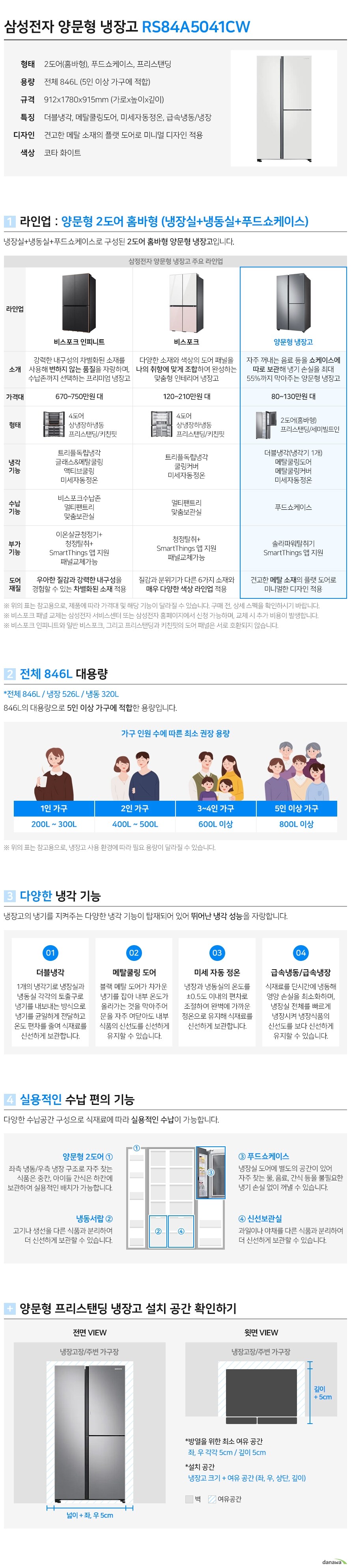 삼성전자 삼성 2도어 846L 메탈 코타화이트 (RS84A5041CW)