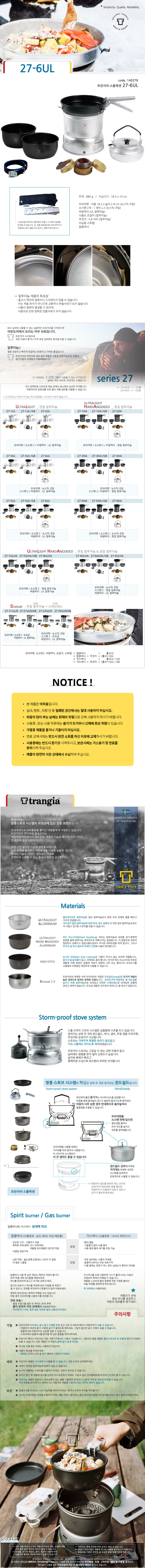 트란지아 캠핑 여행용 코펠 27-6UL 스톰쿡셋