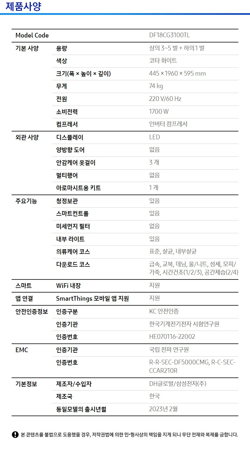 삼성전자 비스포크 DF18CG3100TL