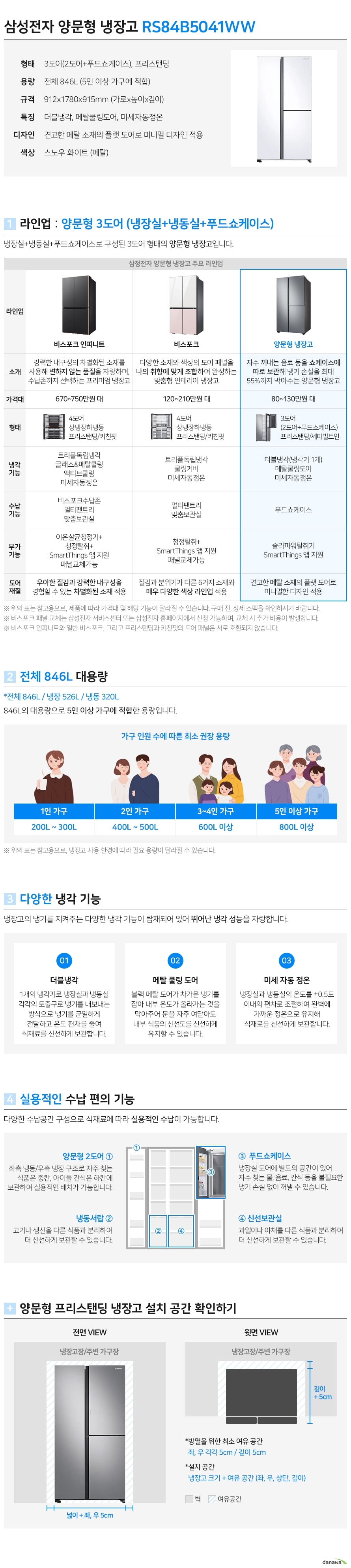 삼성전자 삼성 2도어 846L 스노우 화이트 (RS84B5041WW)