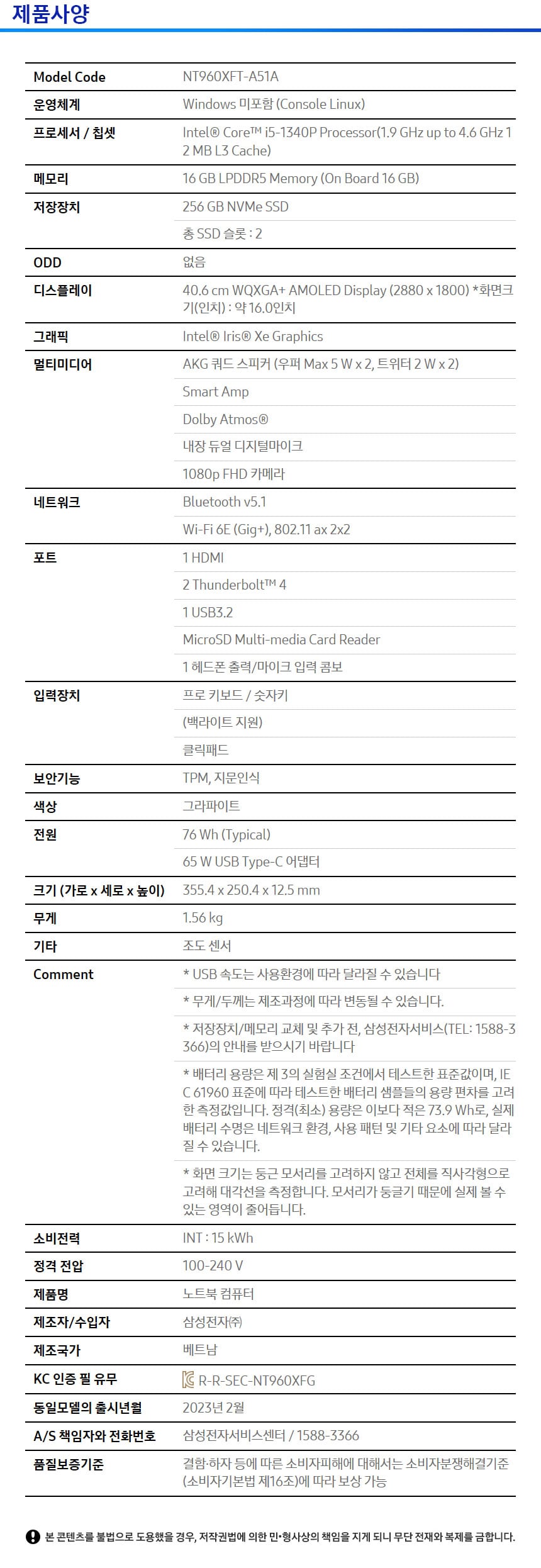 삼성전자 갤럭시북3 프로 NT960XFT-A51A