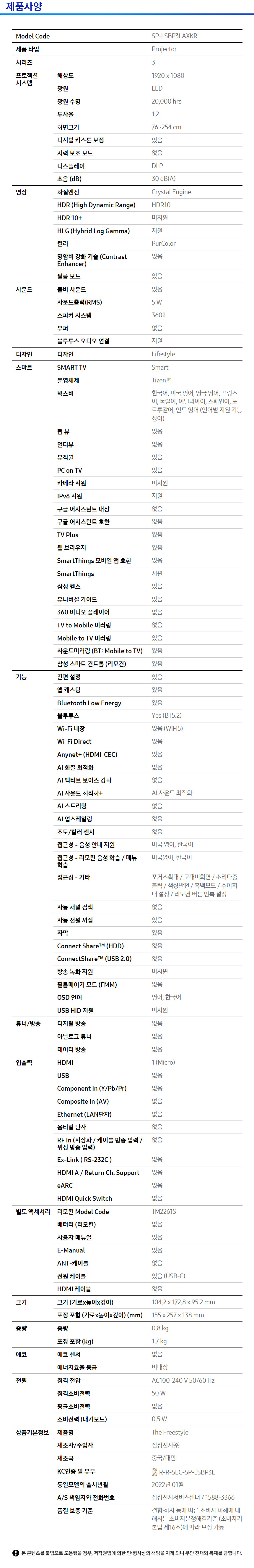삼성전자 더프리스타일 SP-LSBP3LAXKR