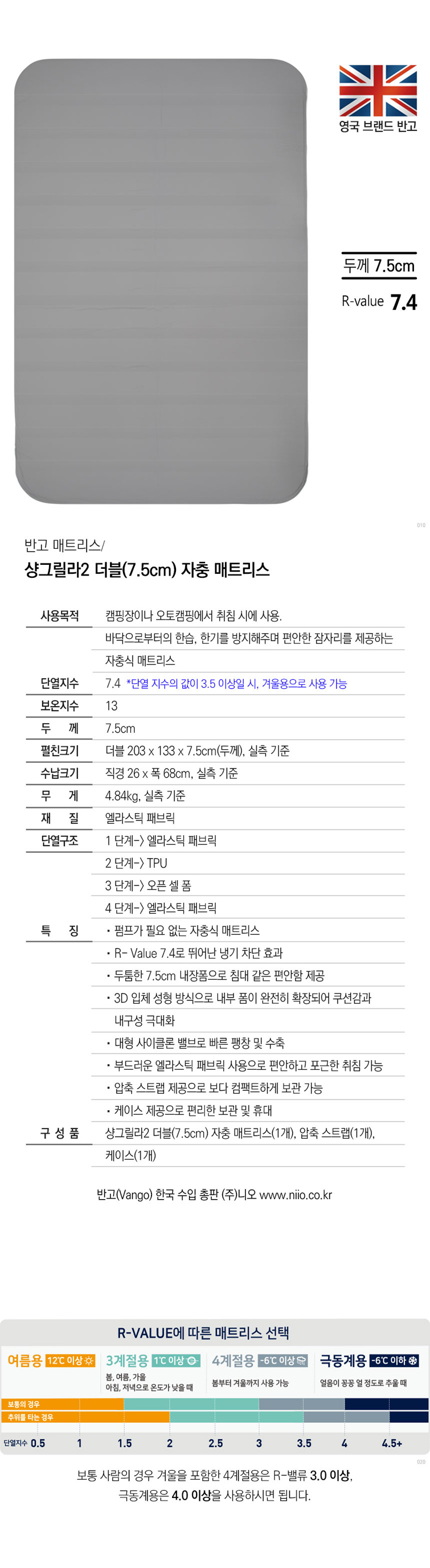 반고 샹그릴라2 더블(7.5cm) 자충 매트리스