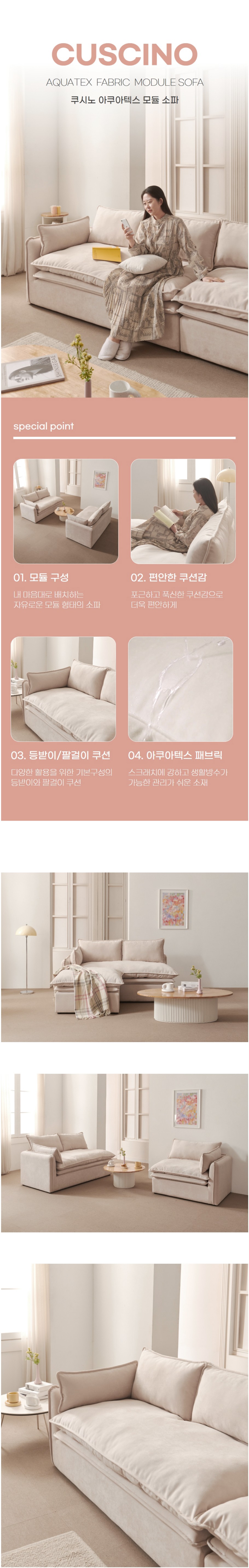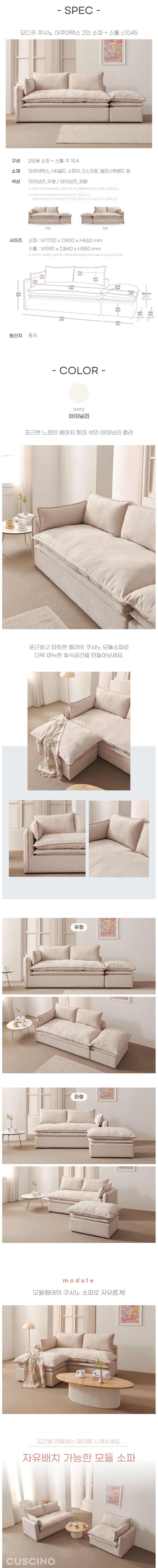 모디카 쿠시노 아쿠아텍스 2인 소파 + 스툴
