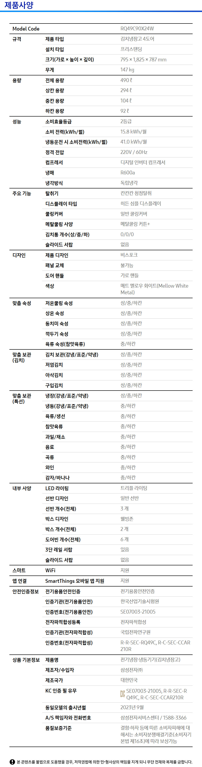 삼성전자 비스포크 RQ49C90X24W