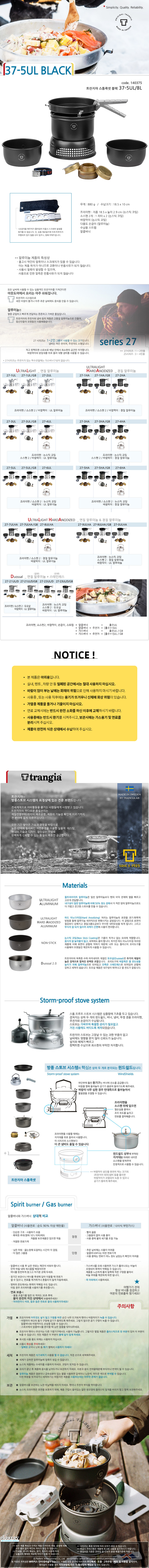 트란지아 캠핑 여행용 코펠 37-5UL/BL 블랙 논스틱 스톰쿡셋